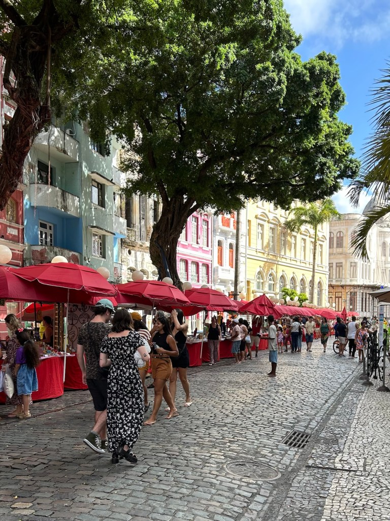 We heard Brazilian music and saw our Odyssey neighbors dancing in the streets. Colorful booths of local specialties lined the streets.