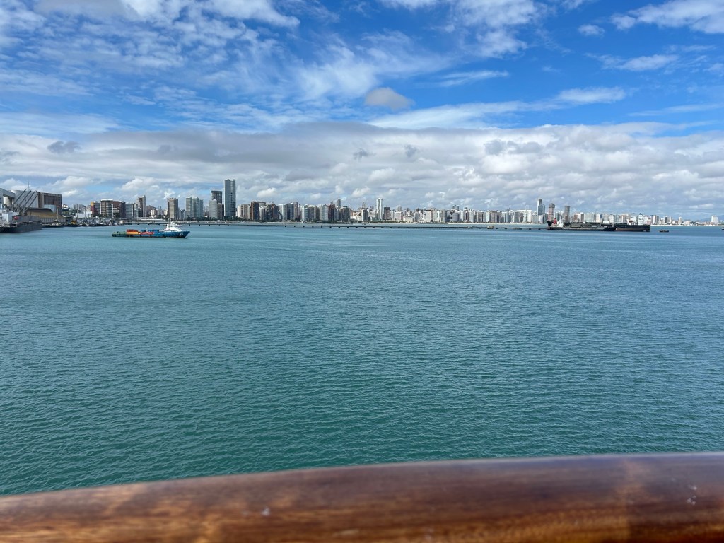 Fortaleza translates to “fortress” in Portuguese referring to its origins as a fortified settlement. The city has one of the longest coastlines in Brazil and is famous for its beautiful beaches. We were here just a day for supplies. I’m still a little wary and cautious about leaving the ship. I don’t want to take the chance of “missing my ship.” We were scheduled to “get under way” at four so I opted to just remain aboard. I found it interesting watching the crew off load our trash🤪 and take on needed supplies. About a dozen trucks were lined up waiting as soon as we docked.