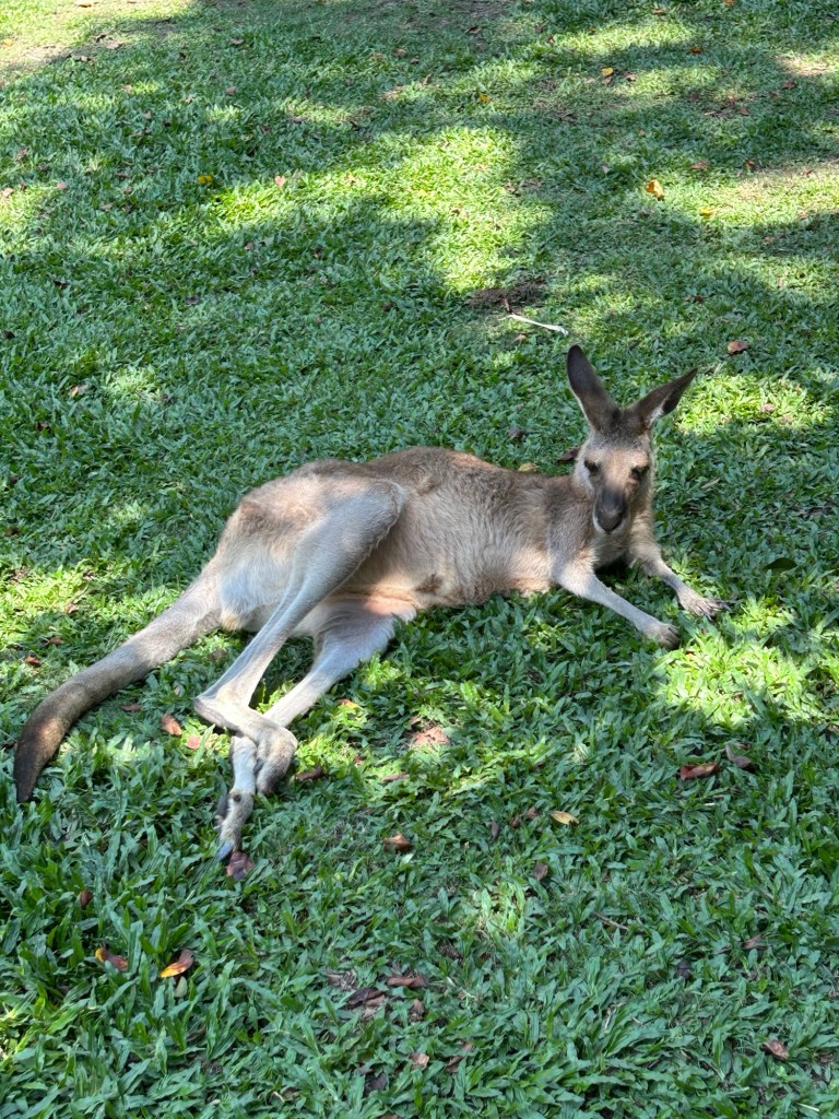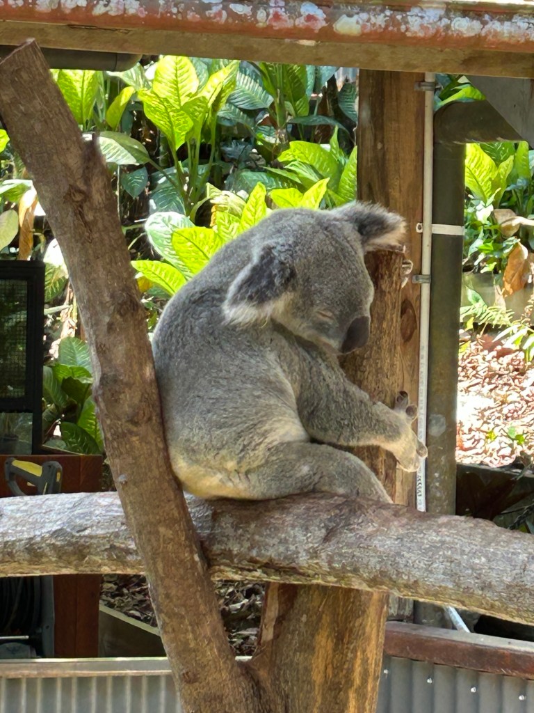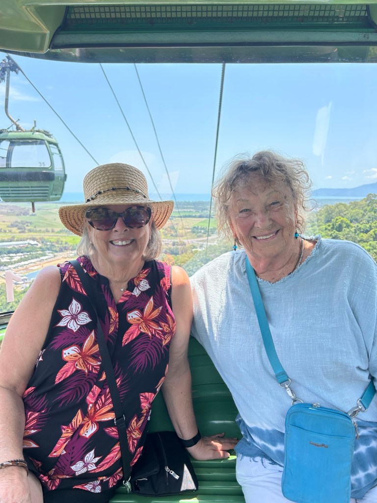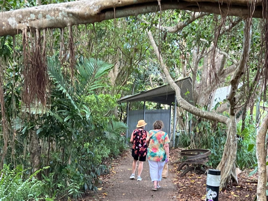 My new friend Phyllis and I spent the day in Karanda. This small village was delightful. We arrived by a skyrail, shopped, saw amazing aboriginal art, shared a plate of sweet potato fries, and walked through the Karanda Sanctuary.